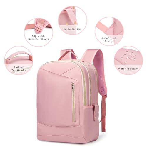 - ★Durable Material: The backpack for traveling on airplaneis made of high quality nylon fabric on the outside, the lining is made of polyester fiber, and the zipper is made of high quality metal. The pink design makes this carry on backpack for women more suitable for women, and this color symbolizes vitality and youth. These factors make for a durable and elegant pink backpack.