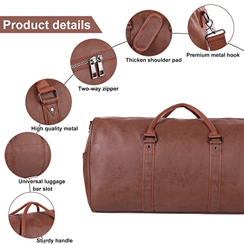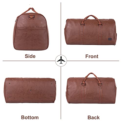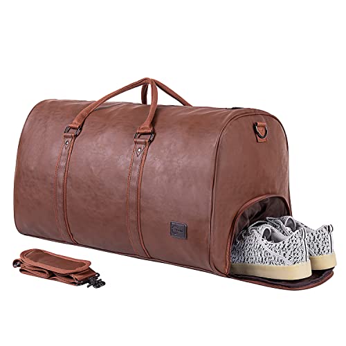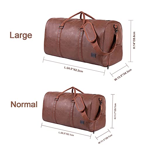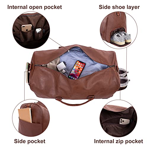 Seyfocnia Leather Travel Bag with Shoe Pouch, Large Carry on Bag Gym Duffel Bag,Waterproof Weekender Bag for Women Overnight Bag for Men-Brown