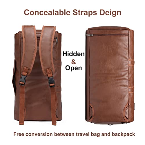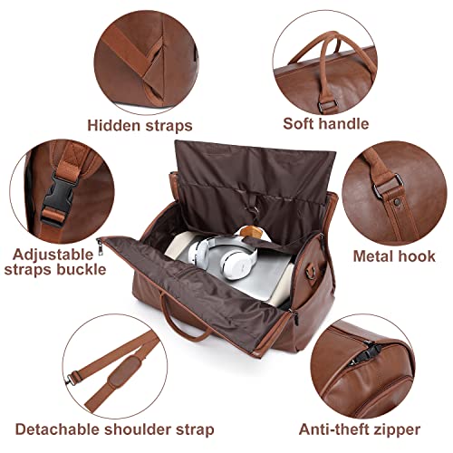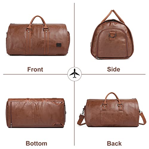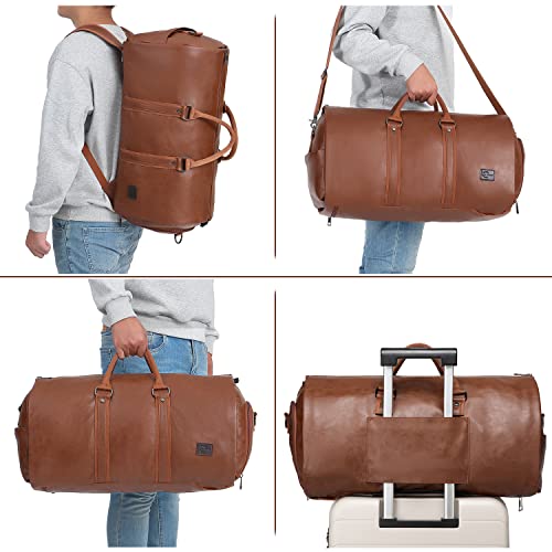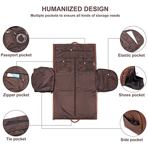 Carry On Garment Backpack, Waterproof Mens Garment Bag for Travel Duffle Bag Business, Leather Duffel Bag with Shoe Compartment -Brown