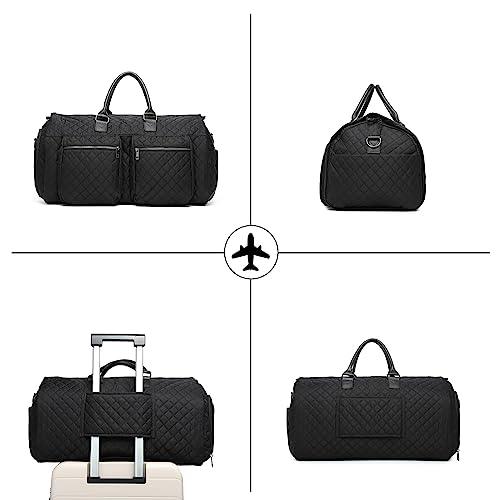 - ✅SUPER VERSATILE BAG: With the fancy design of combining the feature of suit bags and duffel bag for women, such as hanging clothes (placed with suit, skirt,evening dress), various internal pockets and large capacity(placed with shoes, toiletries, cosmetics and electronic devices, etc.)On the side of the garment bags for hanging clothes , there is a zip pocket for easy access to lipstick and small mirror.