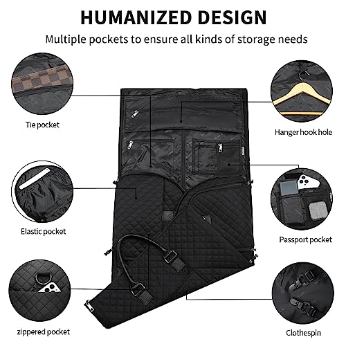 - ✅NO WRINKLE: It can be a great hanging garment duffel bag for travel when you open this convertible garment bag for suit and lay it out. There are also 2 buckles inside to keep the garment flat and prevent it from moving during the trip, no wrinkles trouble your dress or suits.