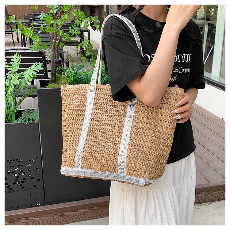 - ersatile, simple and fashionable straw woven bags, large capacity single shoulder paper rope woven bags, vintage beach bags. This is the best gift for the person you love.