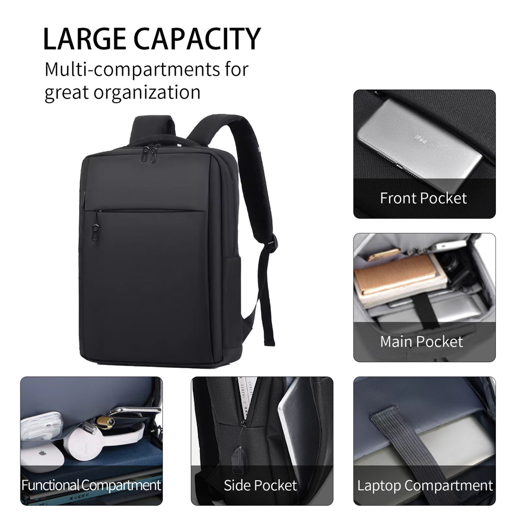 -【Durable】Made from coated oxford fabric, the computer backpack offers exceptional water and scratch resistance. Durable zippers and reinforced shoulder straps with triangular support ensure long-lasting performance, making it a reliable choice for daily use.