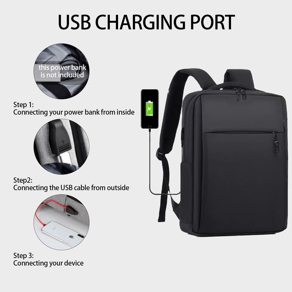 Laptop Backpack 17 Inch Waterproof Business Work Backpack for Men/Women Computer Backpack with USB Charging Port, Laptop Compartment,Black