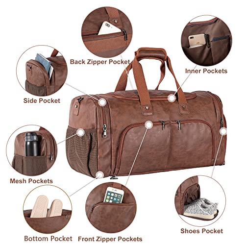 - 【Dimension & Material】:Our leather overnight bags for men are made of waterproof PU leather and measure 22"L x 12"W x 10.5"H, making it the perfect size for a weekend getaway. This multipurpose bag is also a great choice for anniversaries, Christmas, Valentine's Day, Father's Day, birthdays, and more.