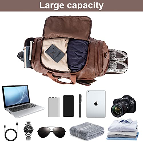 - 【Multipurpose】:This leather overnight bag for men is not just practical, but also stylish, with a vintage look that can be used as a travelling bag, gym duffel bag, sports duffel bag, overnight bag, military duffel bag, and carry-on luggage bag for men and women.
