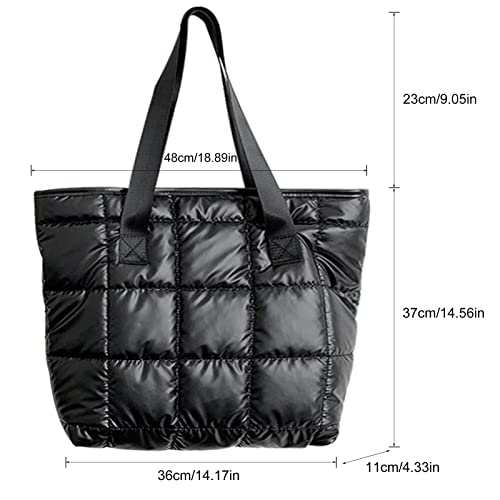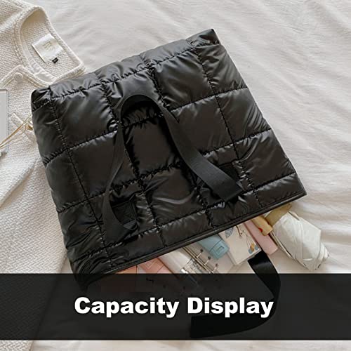 - DOWN BAG DESIGN:The large size down tote is neatly sewn with a stylish chequered quilting design. Down cotton padding makes the bag very lightweight. Simple and cute appearance, suitable for all kinds of clothes.
