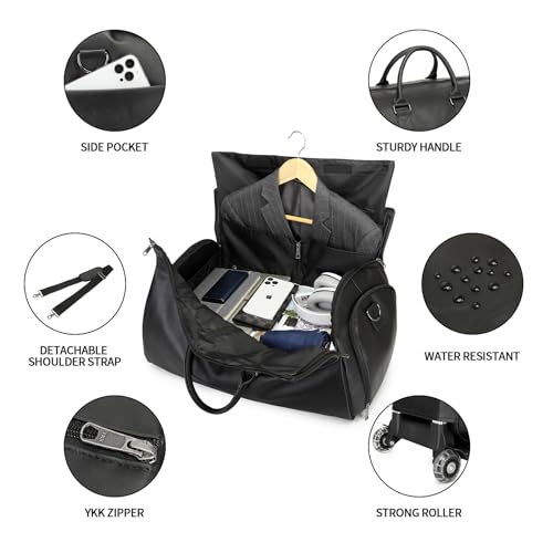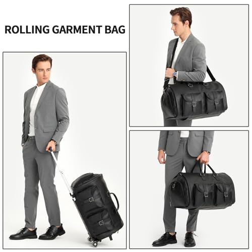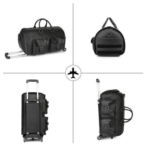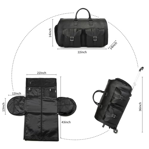 - Extra Large Capacity: The suit travel bags for men measures 22'' L x 12.5'' W x 12.2'' H inches, with a large capacity to store all your belongings. Its removable shoulder strap offers versatility and comfort. With a bottom-mounted trolley, this carry-on duffel bag transforms into a garment bag on wheels in seconds and its lightweight design makes your travels easier.