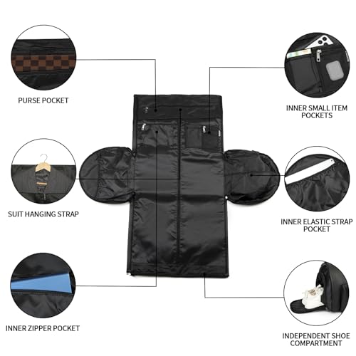 - Unique Design: This convertible garment bag combines the features of a garment bag and a duffel bag in a beautiful design. Not only is it a garment hanging bag, it can also be a luggage bag for holiday trips. Designed to keep your clothes, suits and dresses wrinkle-free, clean and tidy.
