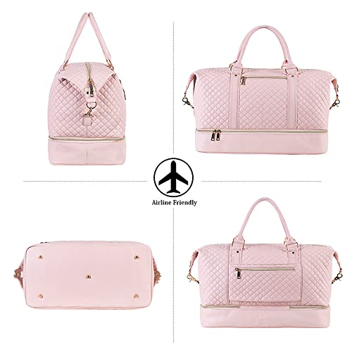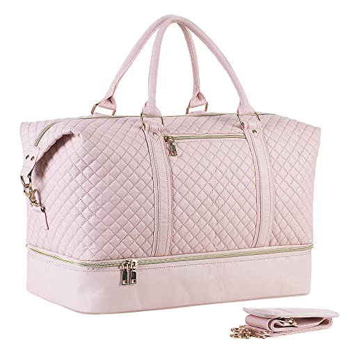 - ★Oversized duffle bag:Made of high quality nylon fabric and PU leather. 21.2"/10.8"/11.7"(L*W*H). Weight: 1.5KG/ 3.3 pounds.Larger than normal gym duffel bag, suitable for 3-4 days weekender or business trip. Stylish and lovely pink to add energy to your travels.